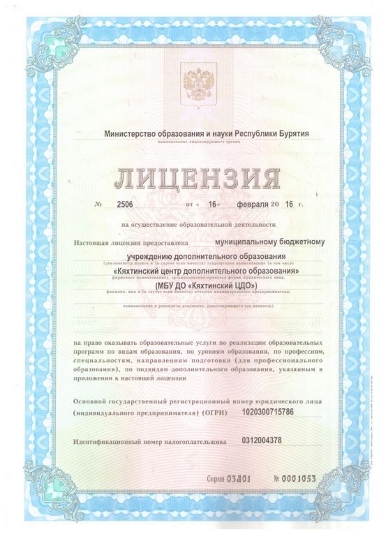 Полное наименование образовательной организации* Муниципальное бюджетное учреждение дополнительного образования "Кяхтинский центр дополнительного образования"